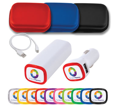 A trendy and classy to cover your brand's promotions. This Family set features impressive combination of 2000mAh Power Bank and Dual USB Car Charger packed in an elegant medium EVA 50mm Case. The set can be excellent gifts to loved ones, friends, staff and clients.